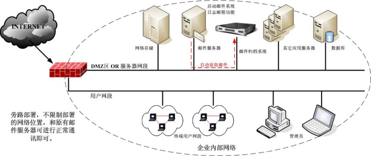 1、邮件导入顺序:Internet → 邮件网关→ 邮件归档 → 邮件服务器;邮件出的顺序:邮件服务器→邮件归档→邮件网关→internet