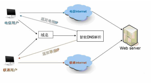 通过在一个机房引入电信、联通两路带宽,在一个机房、通过一台服务器就可以实现电信用户通过电信线路访问,联通用户通过联通线路访问,可以实现全网络的高速访问。
