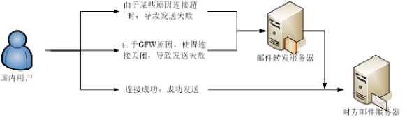 1、给国外发送邮件:当用户给国外发送邮件失败后,本地邮件系统的转发机制进行判断,符合条件后,转发邮件到设在外地的邮件转发服务器。由邮件转发服务器来代替发送邮件,使得邮件得以顺利发送。